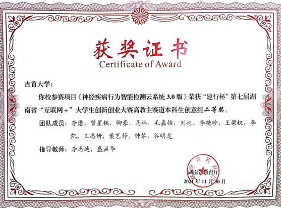 2021年:“建行杯”第七届互联网+创业大赛二等奖
