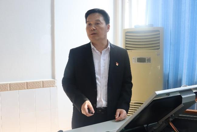 图为 王江生为入党积极分子讲课