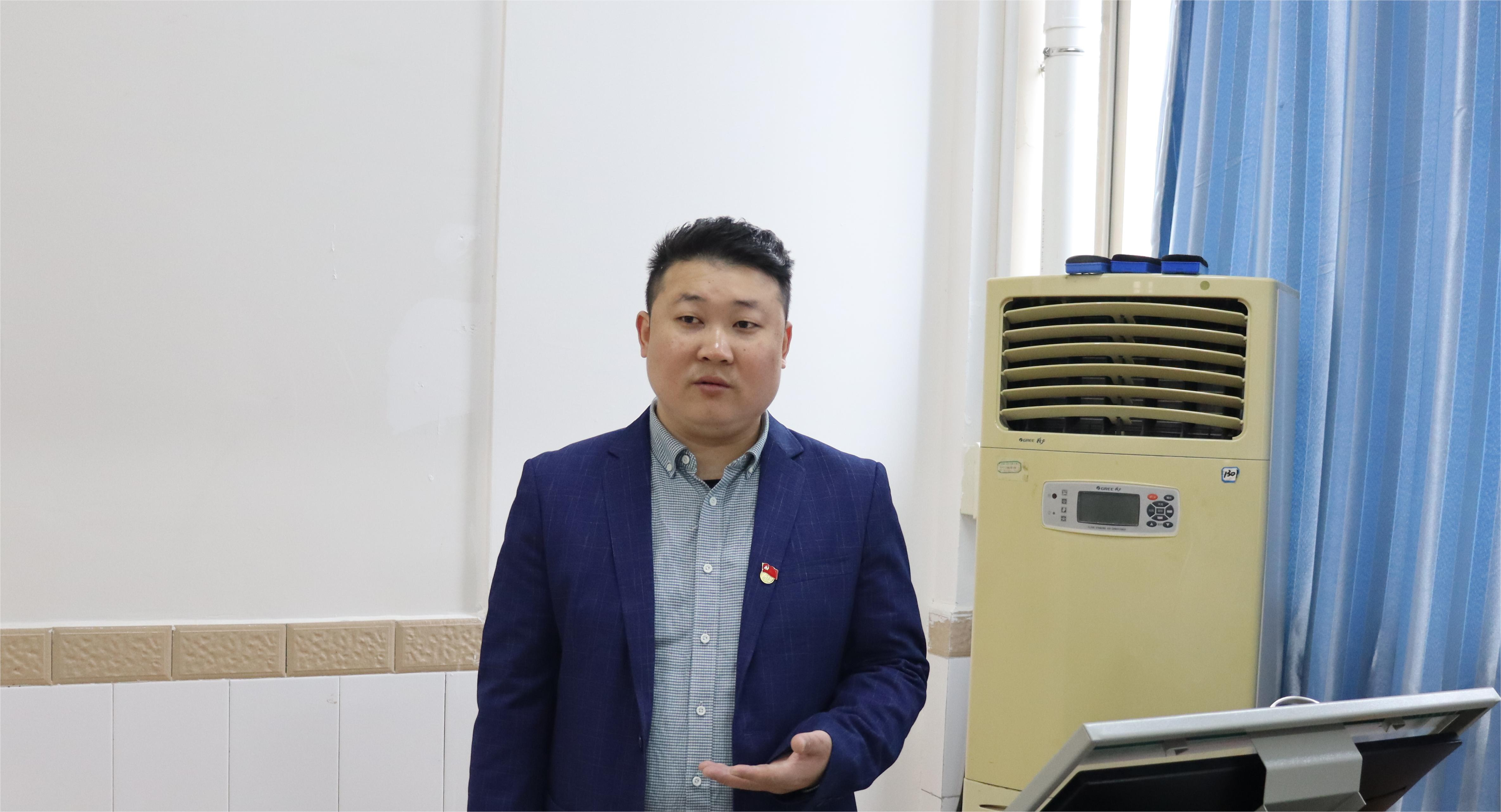 图为 鲁明新为入党积极分子讲课