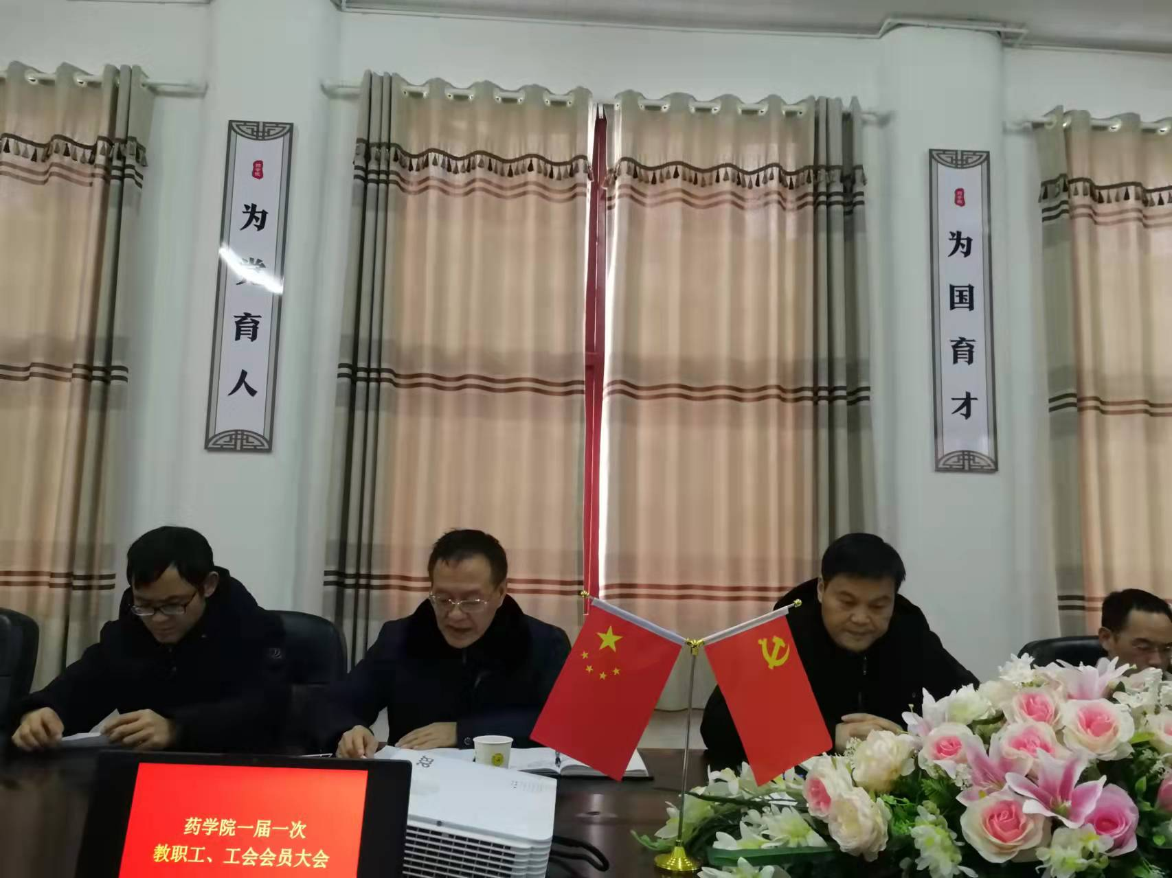 王江生介绍了大会的议程和有关会议要求,工作人员清点了到会人数,大会应到24人,实到18人,因监考和出差请假6人,符合开会人数,王江生宣布大会开幕。