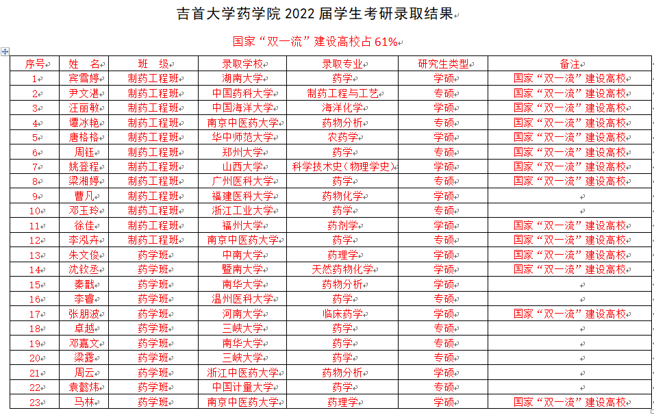 2022届员工考研录取结果通报