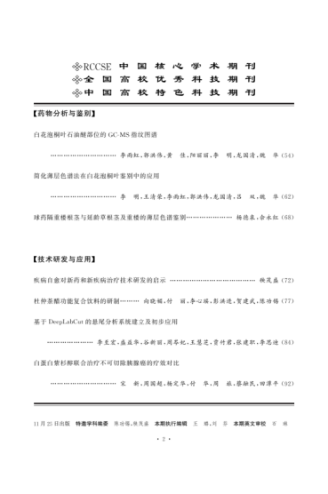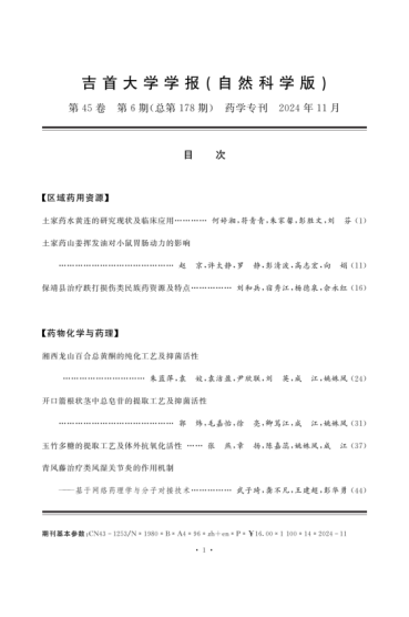 自2024年7月起,该专刊历经征稿、组稿、审稿、返修、编辑、多次校稿、定稿以及终审等重要环节任务,最终刊登了论文14篇,其中本院师生作者11篇、合作单位科技人员作者3篇。论文内容广泛,涉及药用资源、药物化学与药理、药物分析与鉴别、技术研发与应用四大领域。目前,该专刊已在永利yl学报(自然科学版)官方网站(https://zkxb.jsu.edu.cn)正式上线,读者可免费浏览并下载相关论文。这一专刊的推出,是对永利yl23411自2023年首次招收硕士研究生以来科研成果的一次集中展示,有助于促进学术交流和科研发展。公司将以此为新起点,进一步挖掘筛选题材和凝练方向,努力提升研究水平,助推药学类专业人才培养和科学研究事业高质量发展。