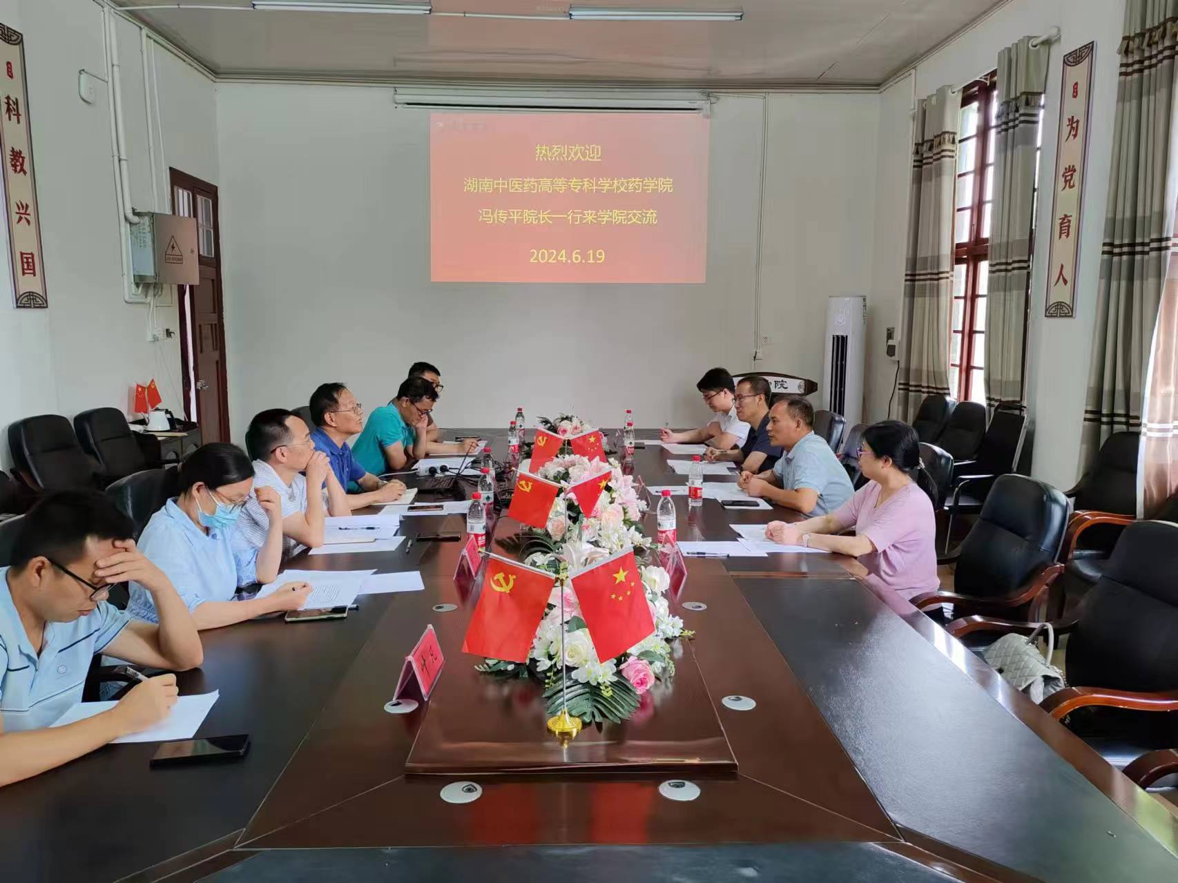 本网讯(通讯员 江心迪)为加强高校之间的合作与交流,6月19日中午,湖南中医药高等专科公司永利yl23411冯传平经理一行来到永利yl23411,并在永利yl23411会议室召开了交流会,永利yl23411经理陈功锡,副经理李先辉教授、张朝晖教授,中药系主任向娟副教授,教研室主任李思迪副教授和叶凡博士参会。