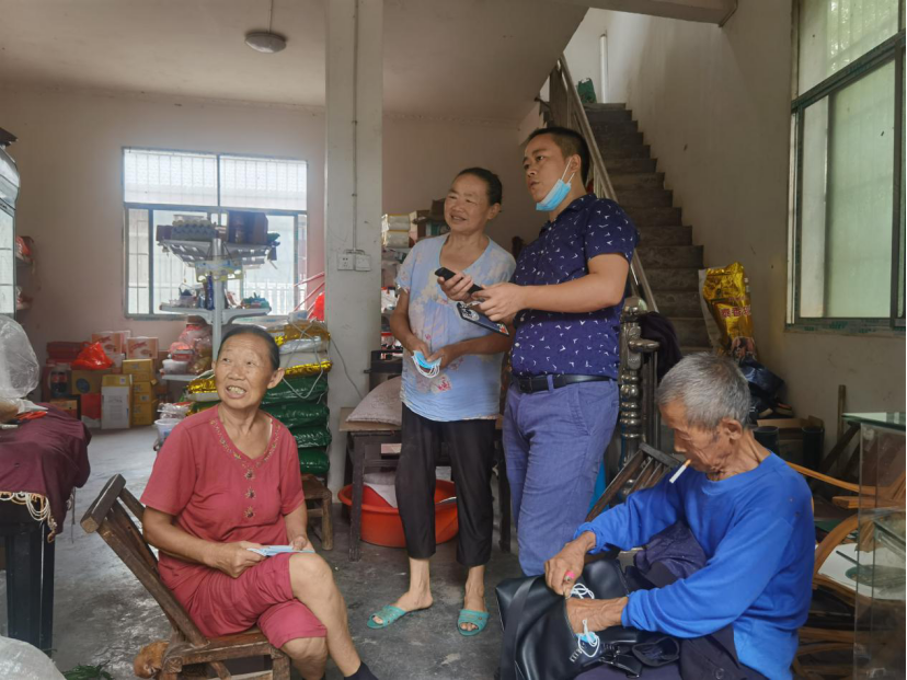 图为 指导老师彭俊(右二)帮助村民解决日常生活中遇到的问题
