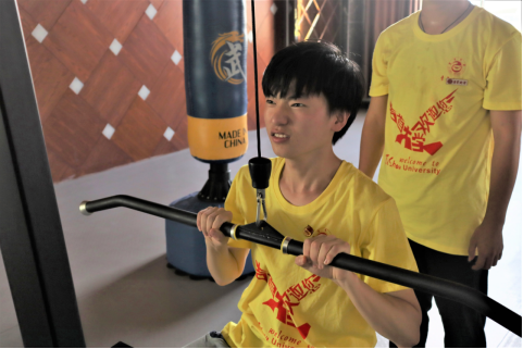 图为 员工们走进员工休闲场所并进行体验