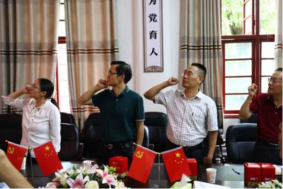 会议伊始,教师们举起右手,朗声重温教师誓词,秧茂盛教授领誓。每一位教师表示勇做一名有理想信念、有道德情操、有扎实学识、有仁爱之心的“四有”好教师。
