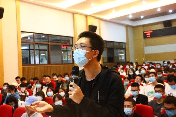 秧茂盛教授结束报告时,现场掌声雷动。同学们十分珍惜与秧茂盛教授面对面交流学习的机会,纷纷提出自己的疑惑与不解,他细致耐心地回答了同学们的问题。
