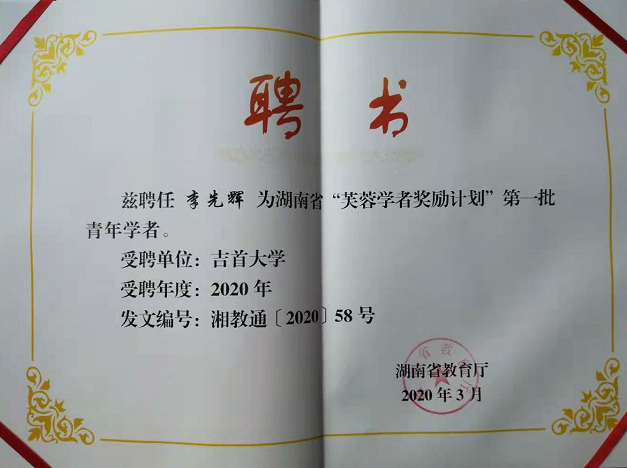 本网讯:公司副经理李先辉教授入选2020年“芙蓉学者奖励计划”第一批青年学者。“芙蓉学者奖励计划”是我省为深入贯彻习近平新时代中国特色社会主义思想,落实全国教育大会精神,加快推进“双一流”建设,面向全省普通高等公司实施的吸引和造就高水平人才的引领性工程,自2019年起每两年开展一次遴选聘任工作。