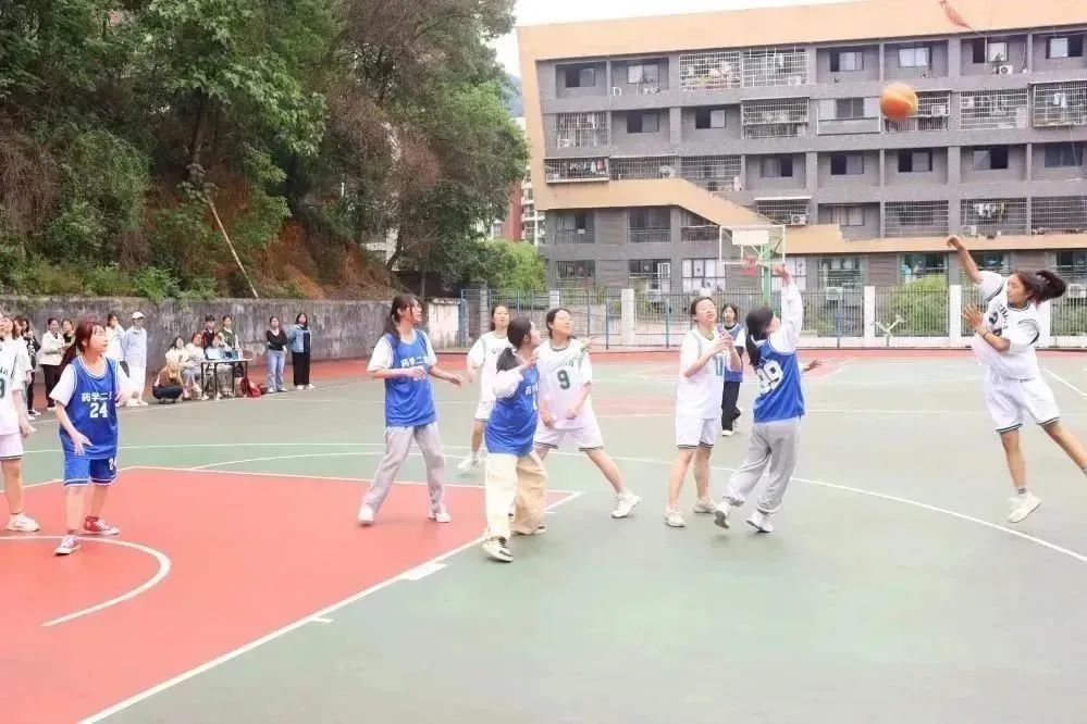 赛场上,运动员们意气风发,运球,传球,断球,拼抢,灵活的脚步,精准的投篮,双方队员个个雄姿英发,攻防之间尽显篮球运动的魅力。赛场下,老师与同学们到场为运动员们激情呐喊,为场上的队员们注入一份力量。