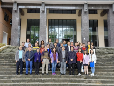 图为 肇庆市卫生健康局一行与公司老师在医药大楼前合影