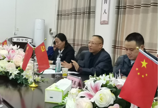 图为王宁董事长介绍湖南名家医药集团基本情况