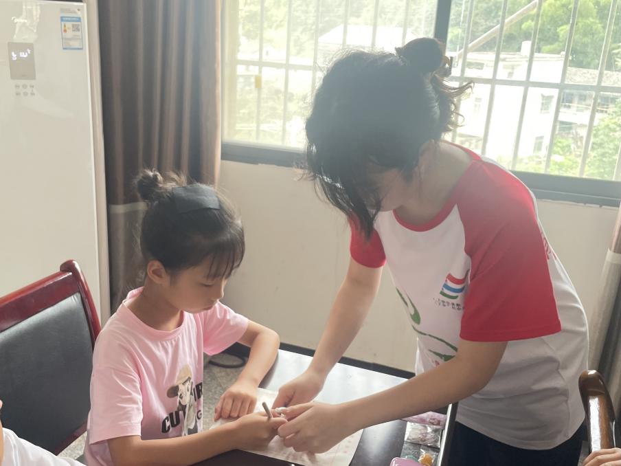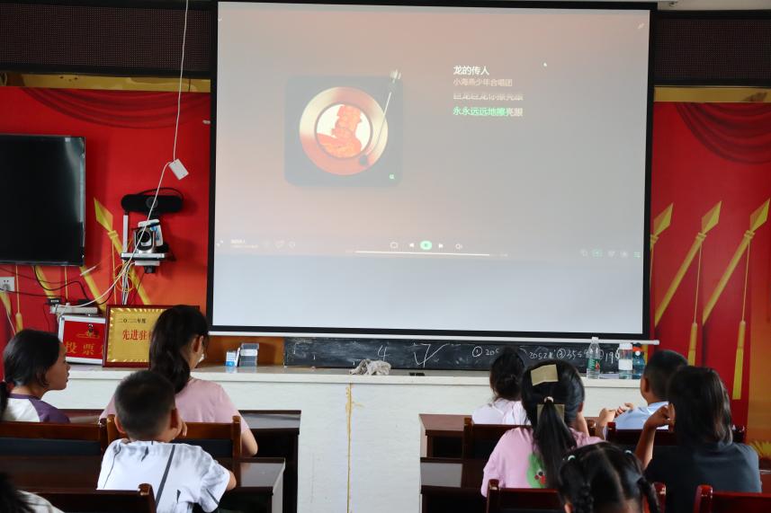“遥远的东方有一条龙,她的名字就叫中国......”音乐课上,社会实践团队的授课老师带领小朋友们学习歌曲《龙的传人》。在学习歌曲之余,授课老师还给同学们讲起了龙所体现的中华民族精神,增强了同学们的民族自豪感。稚嫩的歌声萦绕在课堂,小朋友们心中民族自豪的火苗也愈发旺盛,“小朋友们,我们今天学会的歌曲回家之后也唱给爸爸妈妈听好不好?”授课老师提议道。