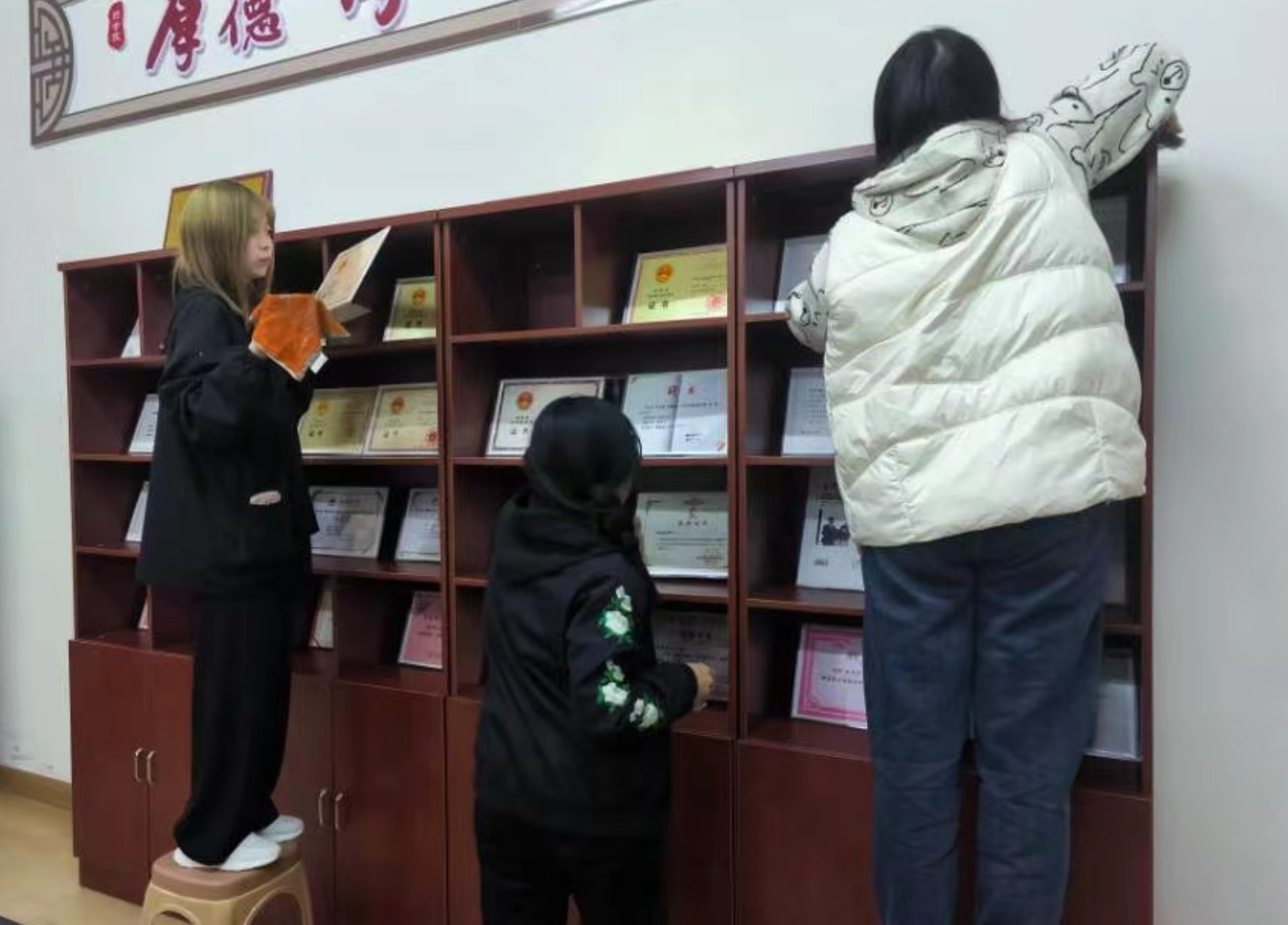 志愿者们分为A、B两组,每天对永利yl23411员工工作办公室、党员活动室、会议室、图书阅览室进行打扫。此外,每周日全体志愿者还进行永利yl23411办公楼的大扫除活动。志愿者们分工明确、干劲十足,给老师和同学们创造了一个干净整洁的工作、学习环境。