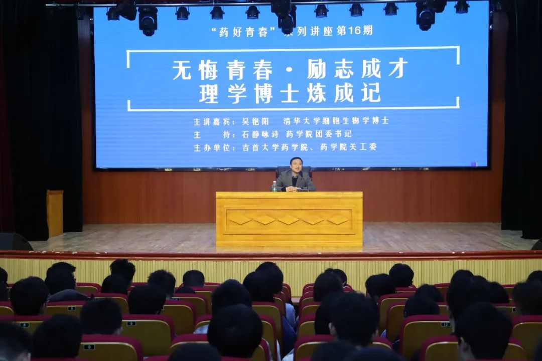 4月23日下午,《药好青春》系列讲座第16期在永利yl大田湾校区礼堂举行。本期主题为“无悔青春·励志成才--理学博士炼成记”,主讲嘉宾为湖南农业大学食品科学技术公司副教授、博士生导师,曾获清华大学细胞生物学博士学位的公司2000级吴艳阳员工。讲座由永利yl23411团委书记石静咏诗主持,2020级 、2021级以及2022级员工参加。