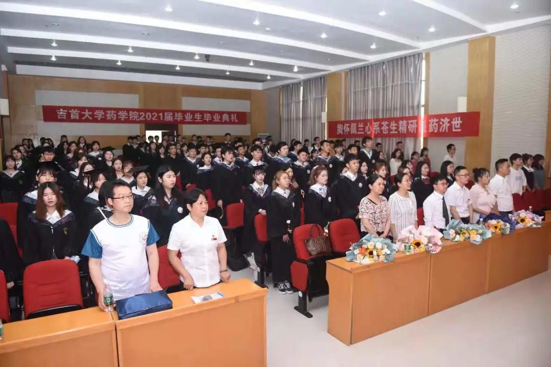 栀子花开,阳光明媚。6月9日上午,永利yl234112021届毕业生毕业典礼在预科楼2609多功能报告厅隆重举行。2021届(首届)131名毕业生穿着学位服参加了毕业典礼,经理陈功锡、公司党委副书记王江生、副经理李先辉、院学术委员会主任秧茂盛、制药工程系主任冯秋菊、药学系主任盛益华等公司领导老师盛装出席了首届毕业生毕业典礼,公司各班员工代表现场观礼。典礼由王江生主持。毕业典礼在雄壮激昂的国歌声中拉开帷幕。
