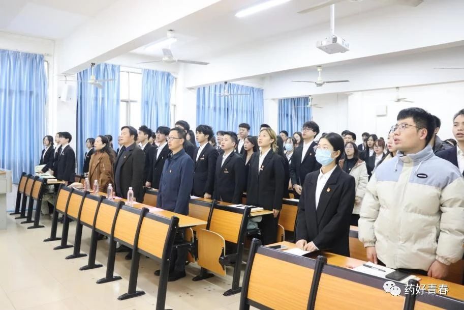 会议伊始,鲁明新向大家隆重介绍到场的领导和教师。紧接着,全体起立,奏唱《国际歌》,随着激昂澎湃的旋律响起,入党宣誓仪式正式进行。