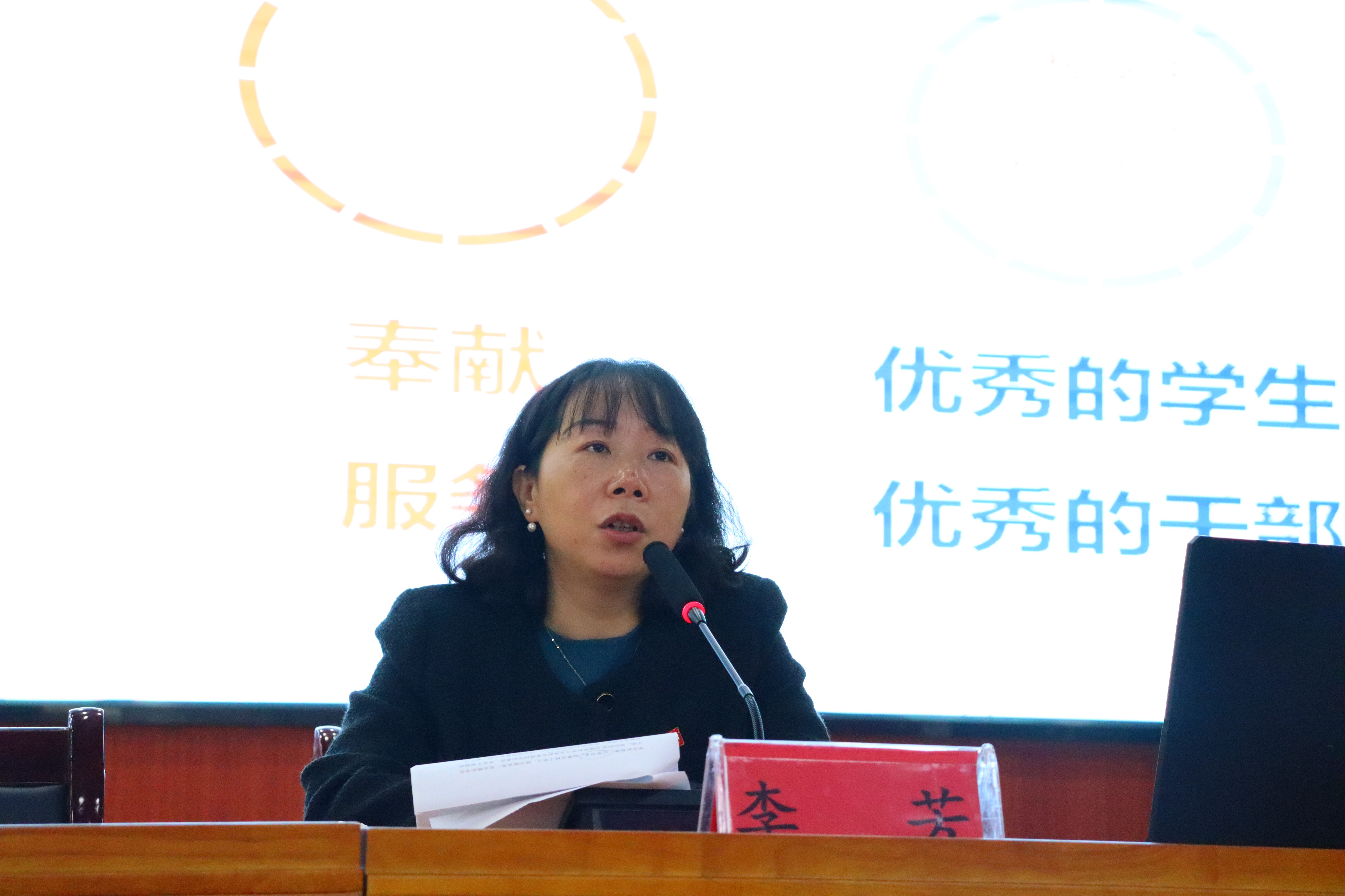随后,她提出高校员工干部应坚持的五项工作原则:第一,实事求是,一切从实际出发的原则。第二,以学为主、兼顾工作的原则。第三,无私奉献、公而忘私的原则。第四,公正公平的原则。第五,从同学中来,到同学中去的原则,坚持群众路线,帮助同学们解决问题。