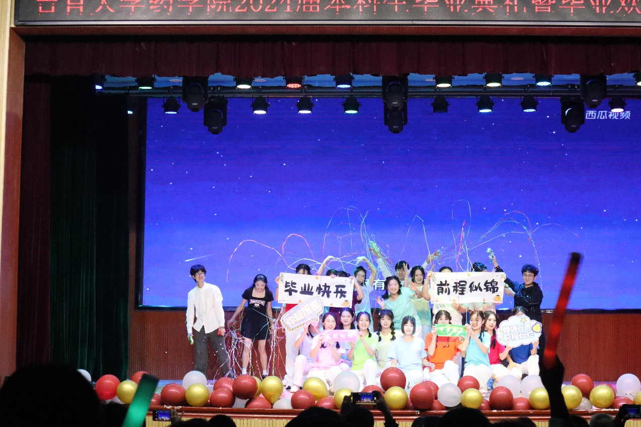 毕业典礼结束后,毕业欢送文艺晚会在热烈的掌声中缓缓拉开帷幕,悠扬动听的歌曲,轻盈优美的舞姿,惟妙惟肖的小品,精彩纷呈的魔术表演,让现场的氛围变得十分热闹与温馨,学弟学妹们用精彩的表演传递对学长学姐们的美好祝福。