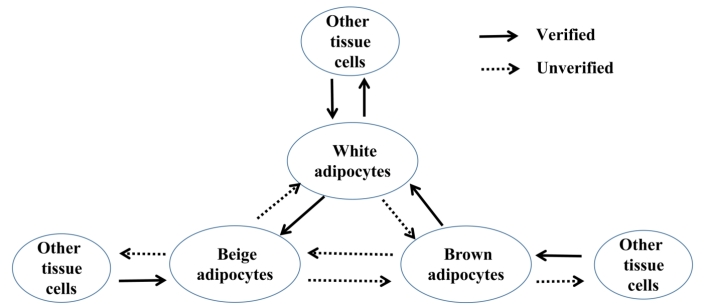 图2白色、棕色和米色三种脂肪细胞生物转化示意图
