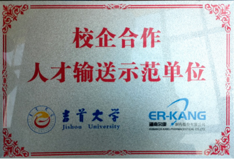 图为 湖南尔康制药公司授予永利yl23411人才输送示范单位荣誉牌
