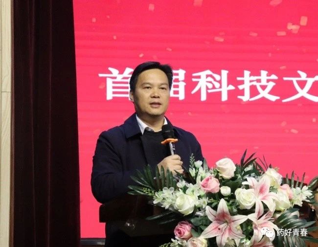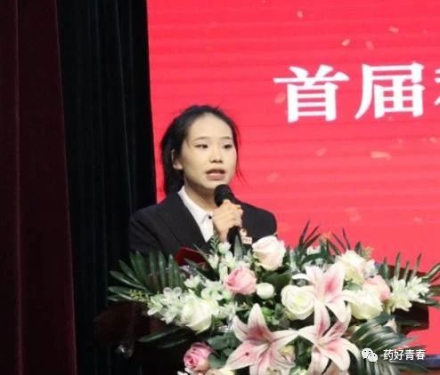 获奖员工代表2021级制药工程班周芳芳同学上台发言,她表示在本次科技文化艺术节中,她收获的不仅仅是荣誉证书,更多的是学科专业知识,在参与各项文体活动时,深刻感受到活动对她个人自信心的提升,还体会到了团结协作的力量。她号召同学们今后积极参与各类赛事,发扬“厚德、博采、精药、济世”的院训精神,立志做一名有理想、敢担当、能吃苦、肯奋斗的新时代有为青年。