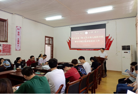 图为王江生主持研究生宣讲会议。