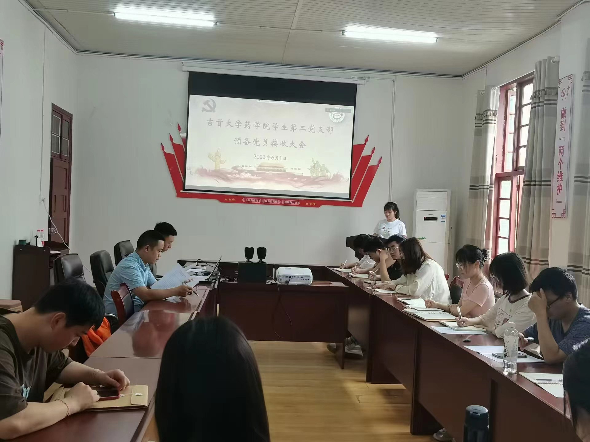 接收大会上,9名发展对象分别在所属支部大会上汇报了基本情况及思想状况。通过无记名投票,廖智慧、刘佳敏、莫丽萍、黄雯、陈雅婷、朱玲、吴崛、李容、卜淑芳9名发展对象全票通过,被党组织接收为预备党员。