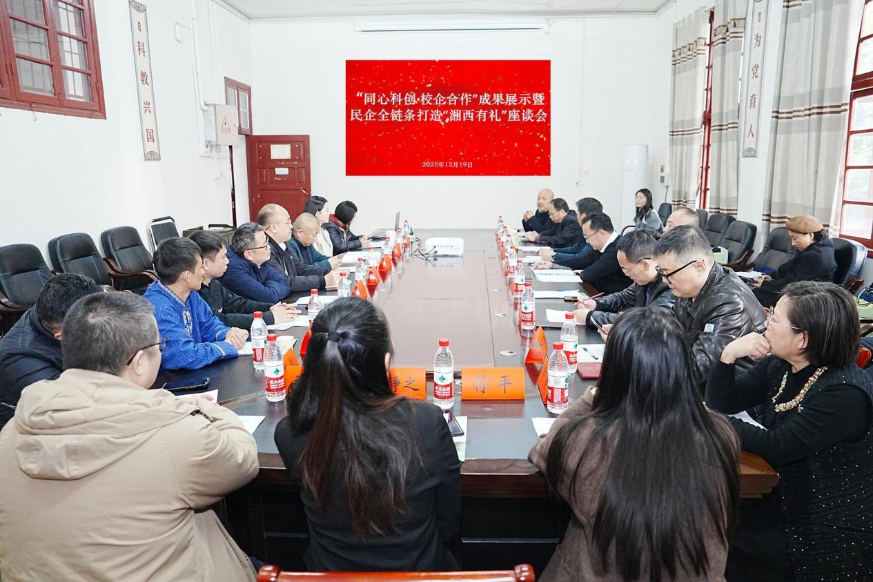 本网讯(通讯员 王芝 刘念 罗紫琪)12月19日,由湘西州委统战部、永利yl23411、湘西州工商联联合举办的同心科创·校企合作成果展示暨民企全链条打造“湘西有礼”活动在永利yl23411成功举行。本次活动汇聚了全州中医药、食品、茶业、文旅、电商等产业链的代表性企业和行业协会负责人,通过产品展销品鉴、实验室实地探访、主题座谈交流三个环节,共同探讨校企协同创新,谋划“湘西有礼”品牌发展大计,共推“湘西有礼”品牌全链条升级。
