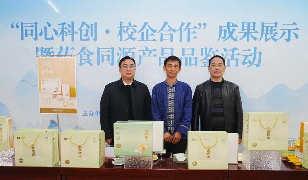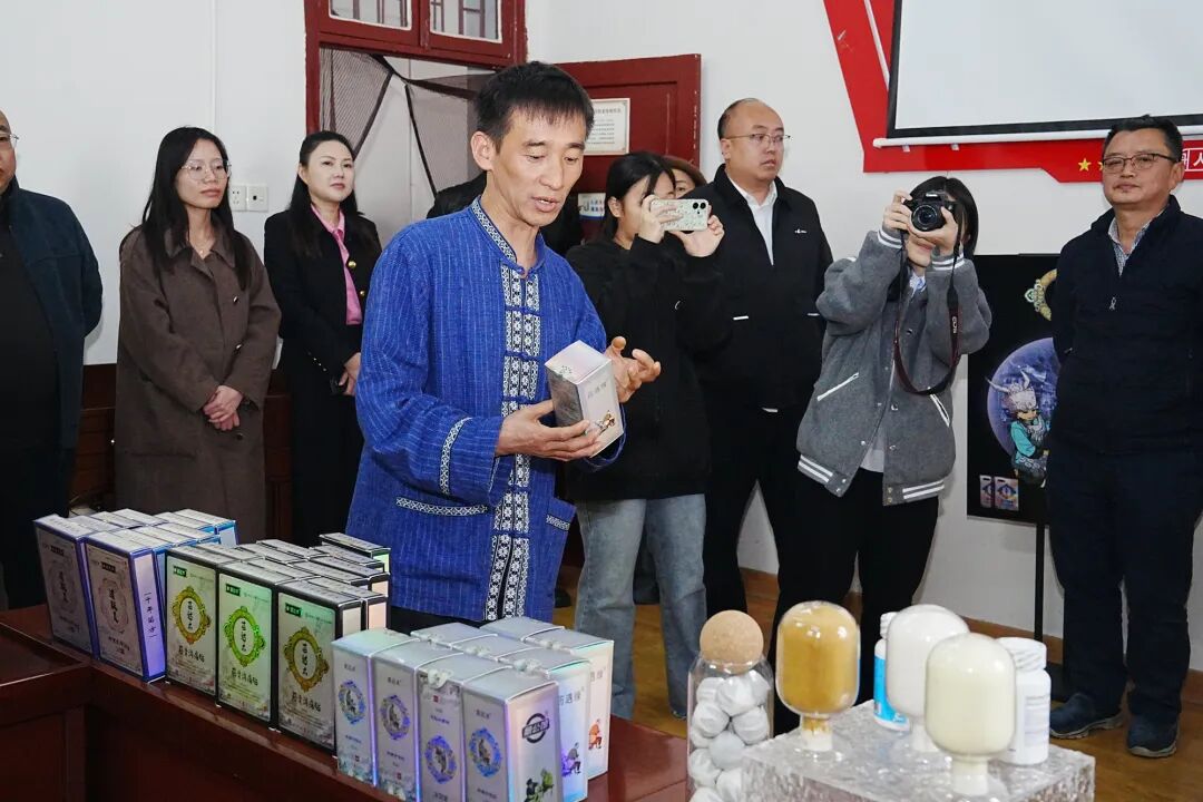 活动伊始,药食同源产品品鉴会在药公司党员活动室举办。企业代表们现场介绍产品:湖南湘焙悦食品的龙山百合饼、百合茯苓糕,以本地食材融合烘焙技艺,清甜不腻;永顺县大丰农业科技的莓茶及复合茶饮以其健康属性备受关注。嘉宾们边品鉴边交流,在舌尖感受湘西特色与科技融合的魅力,直观见证校企合作的阶段性成果。