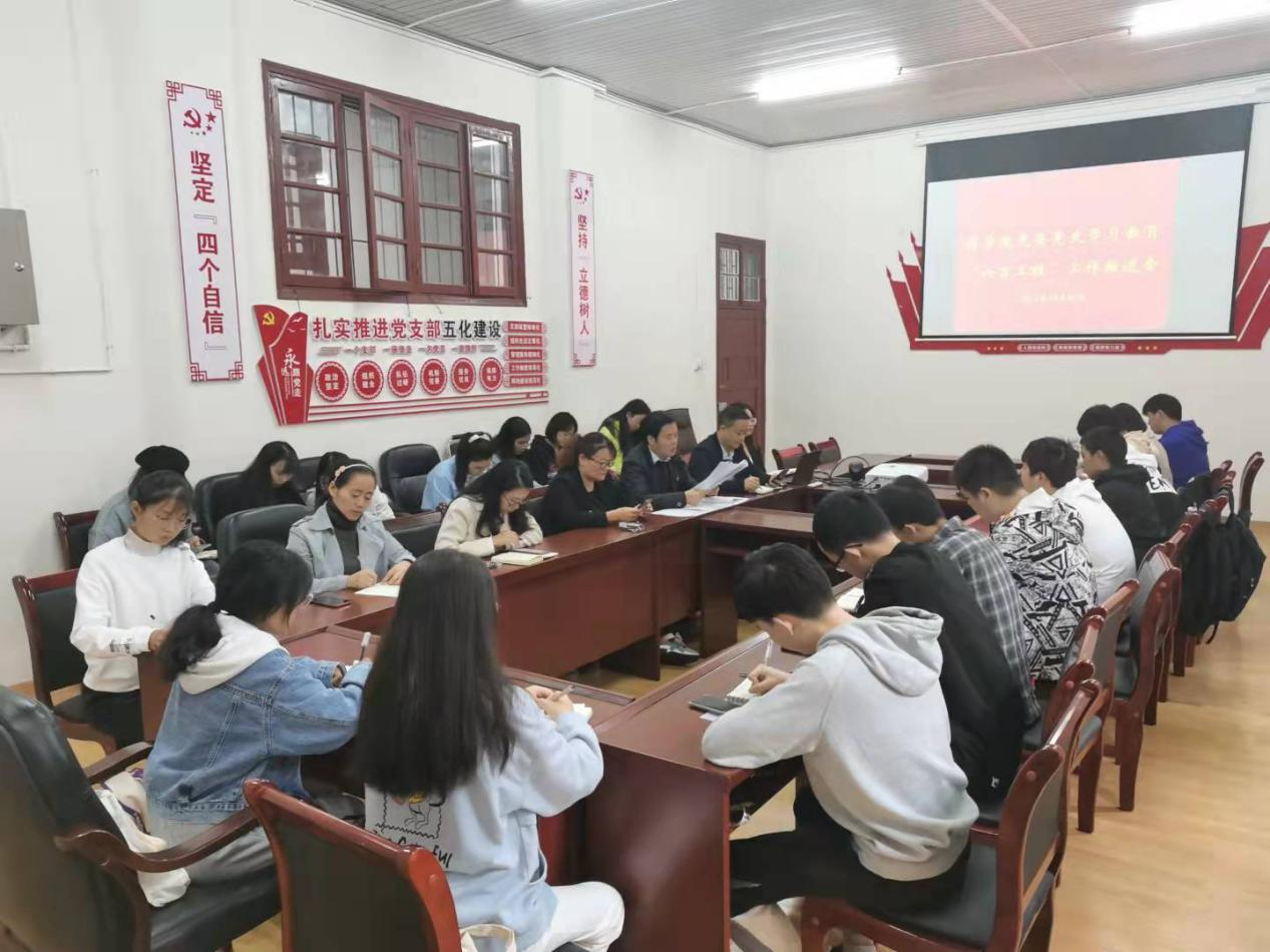 10月14日,学院党委在党员活动室召开党史学习教育“六百工程”工作推进会,公司党委副书记王江生、永利yl第三党总支国防教育公司党支部书记曾容、教师党员姚殊凤、公司教工党支部、员工党支部支委,相关班级班委、寝室长参加会议。会议由王江生主持。