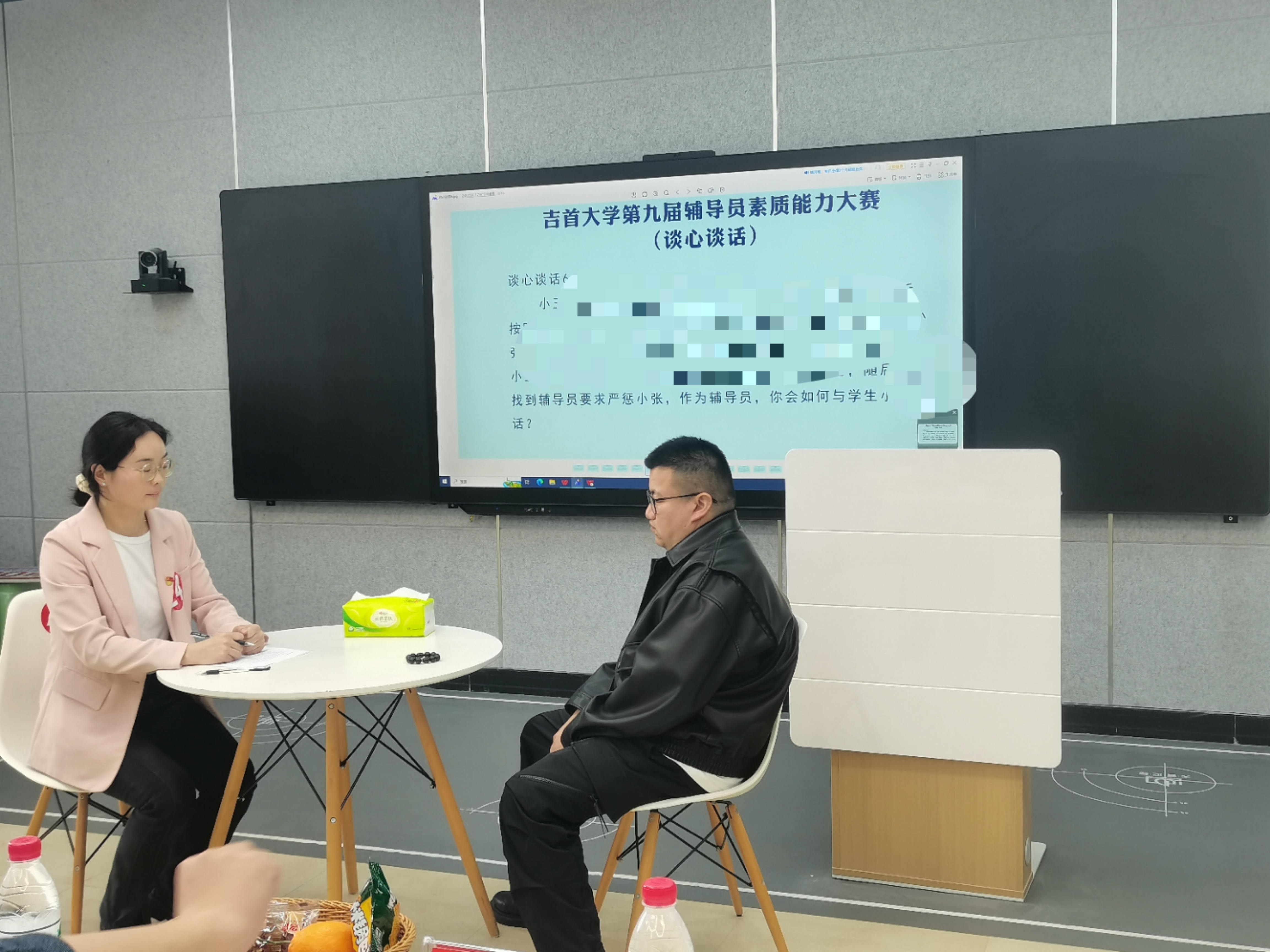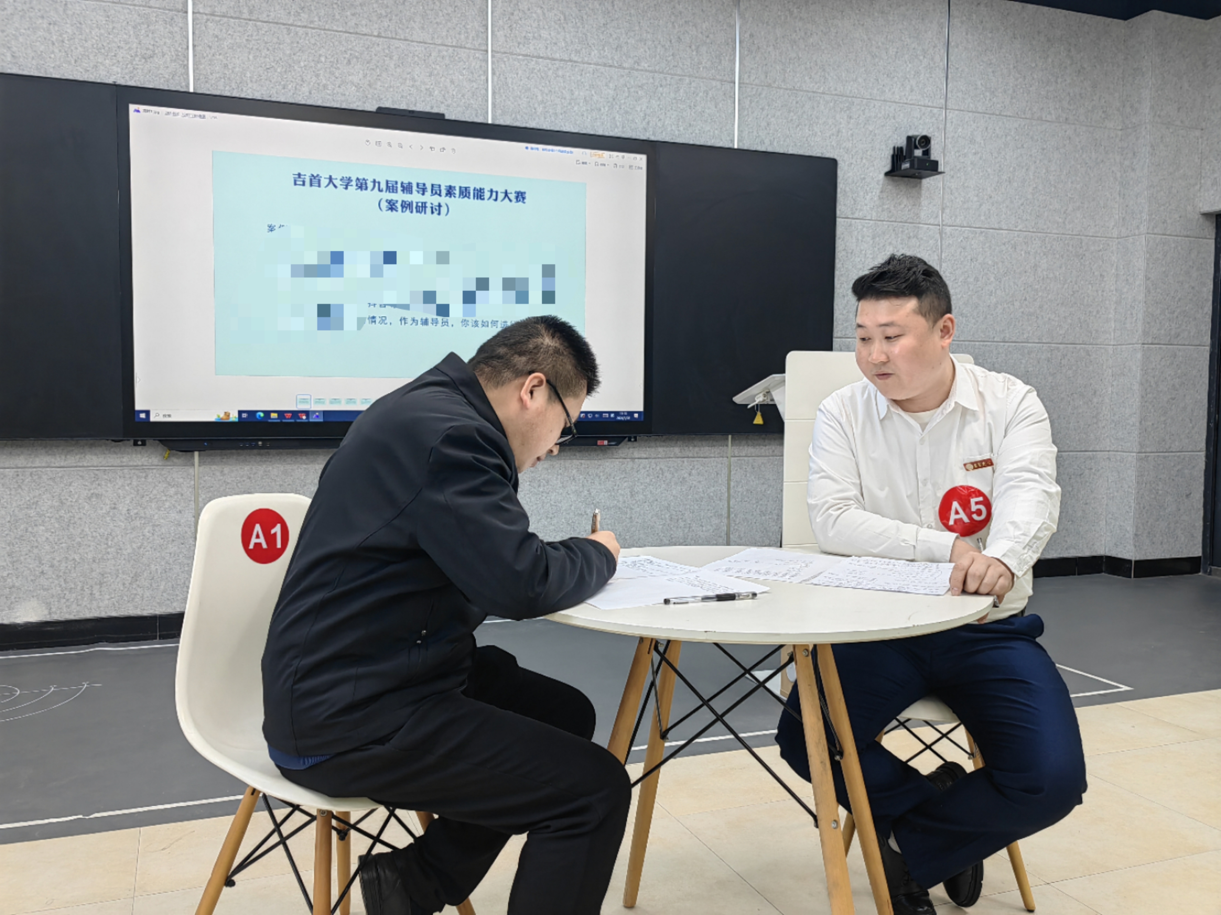据悉,本次比赛分两个阶段。第一阶段全体一线专职辅导员参加,比赛内容为基础知识测试和描述定位,成绩按照基础知识测试30%+描述定位成绩10%从高到低进行排名,前30%人员进入第二阶段比赛,前30%-50%人员可申请参加第二阶段比赛。第二阶段比赛内容为案例研讨和谈心谈话。
