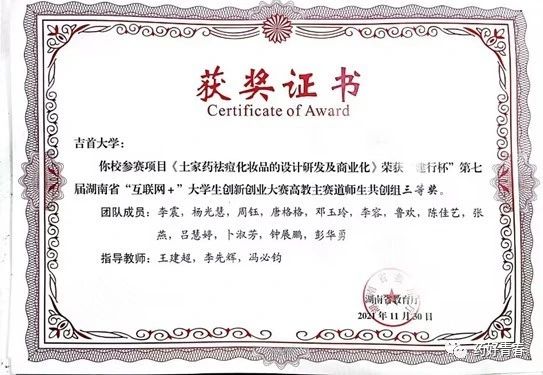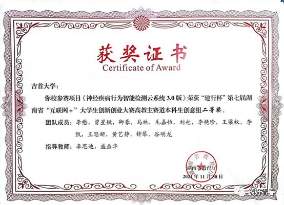 2021年荣获“建行杯”第七届湖南省“互联网+”老员工创新创业大赛校级三等奖