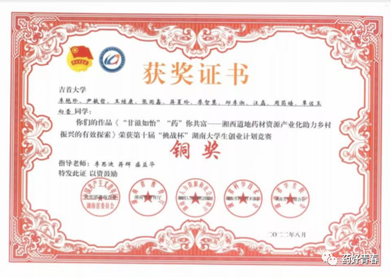 第十届“挑战杯”湖南省老员工创业计划竞赛铜奖