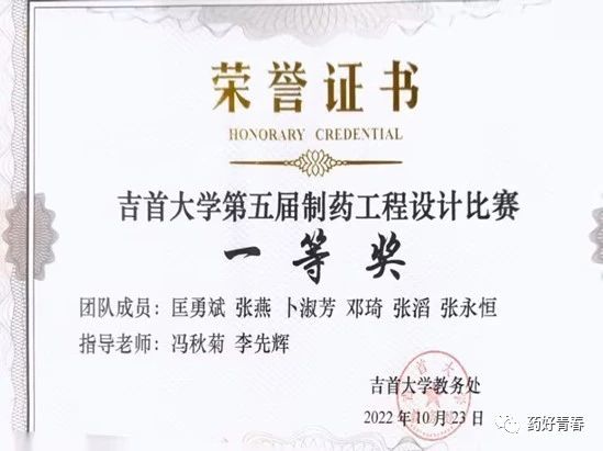 2022年荣获永利yl第五届制药工程设计比赛一等奖