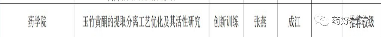 负责项目《玉竹黄酮的提取分离工艺优化及活性研究》被推荐为校级项目