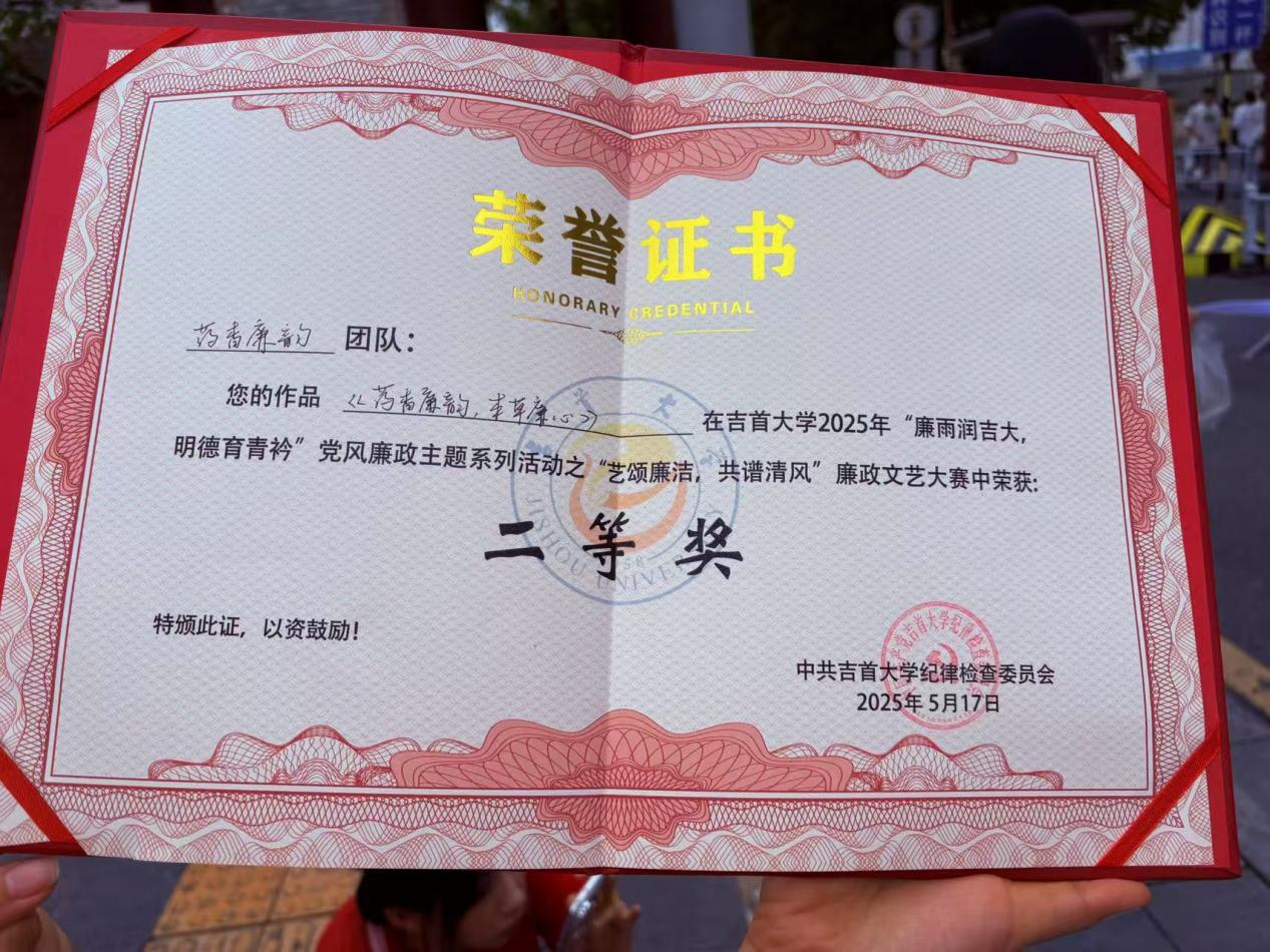 5月17日,永利yl“廉雨润吉大 明德育青衿”党风廉政主题系列活动之“艺颂廉洁,共谱清风”廉政文艺大赛圆满结束,永利yl23411“药香廉韵”队在比赛中脱颖而出,荣获校级二等奖。