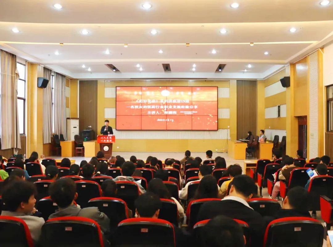 4月7日上午,《药好青春》系列讲座第15期在大田湾校区2609多功能报告厅举行。公司邀请都正生物高级招聘经理、2018届员工郭鹏程做《一名员工的医药行业职业发展经验分享》主题讲座。都正生物和慧泽医药分别进行2024届实习生和2023届毕业生就业招聘宣讲。讲座由永利yl23411学工办主任彭俊主持。