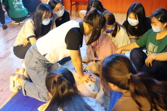 图为 同学们模拟急救操作