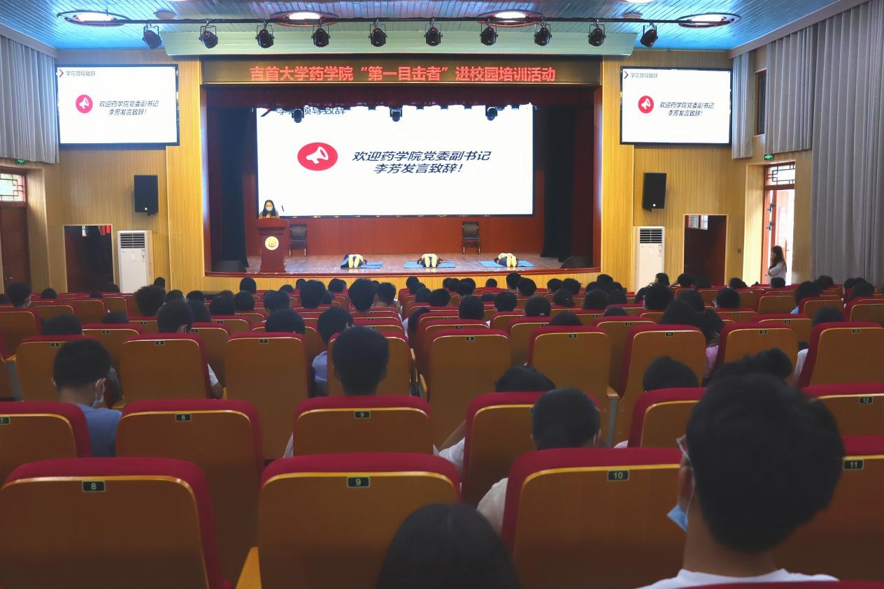 培训现场,药公司党委副书记李芳致辞,她向来到现场的湘西州民族中医院的培训导师团队表示欢迎,并希望现场的同学们能珍惜这次机会,学习现场急救知识,提高自救与互救能力,为以后可能会碰到的突发情况做好准备。