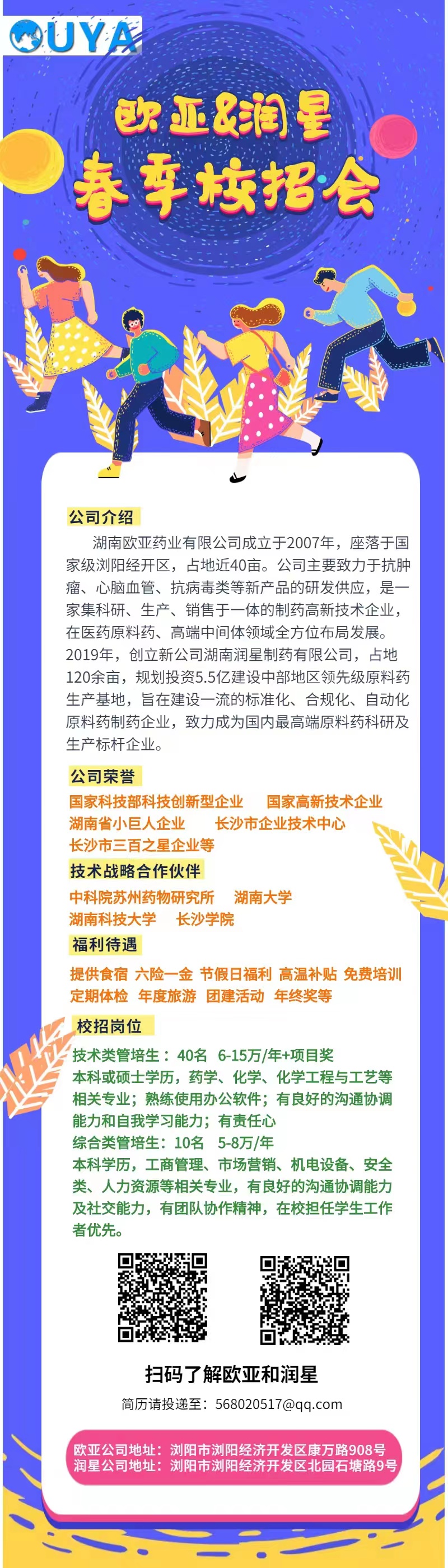 2022年实习就业招聘||湖南欧亚药业招聘简章