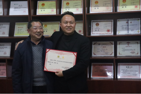图为周华忠副董事长颁授“永利yl23411员工分会”会牌。