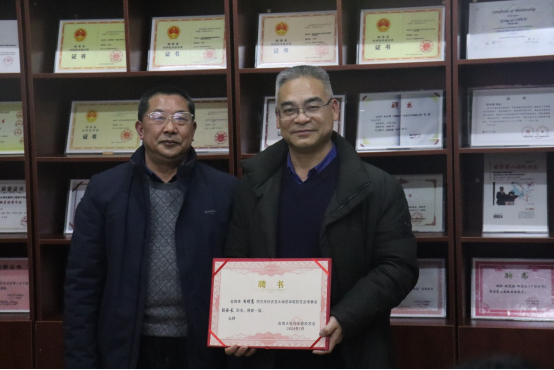 图为员工会会长佘佐辰为理事会成员颁授聘书。