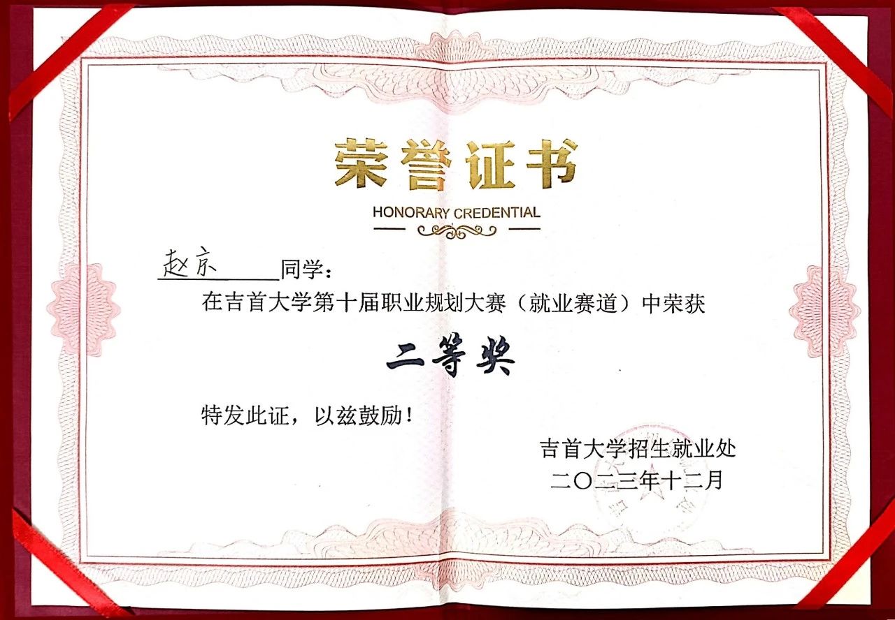 12月19日,永利yl第十届职业规划大赛获奖名单正式揭晓。公司学子再创佳绩,2021级药学1班赵京获得就业赛道二等奖。